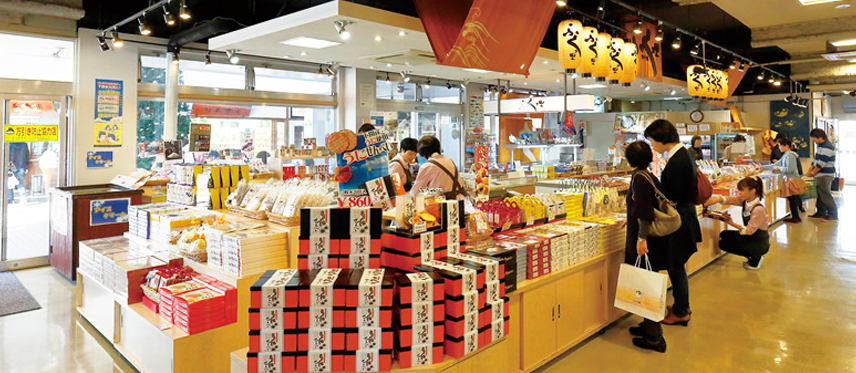 복어, 성게, 오징어, 전복, 어묵 등의 해산물을 비롯하여, 명과·토주 등의 지역특산품, 복어연·아카마세키 벼루 등의 민예품도 있습니다.
