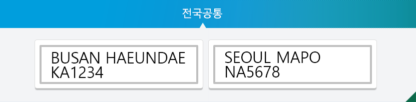 차량 앞면 : 한국 번호판 그대로 사용