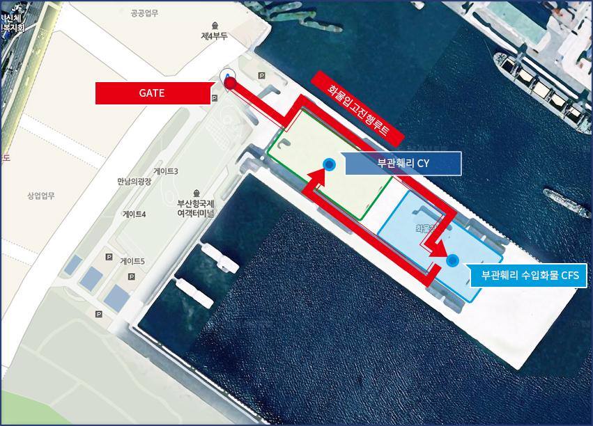 GATE 출입위치 수출 화물입고안내 및 위치설명 수입 CY/CFS 출고안내 및 위치설명