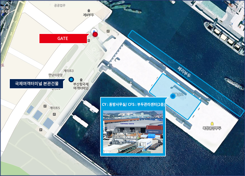 GATE 출입위치 수출 화물입고안내 및 위치설명 수입 CY/CFS 출고안내 및 위치설명